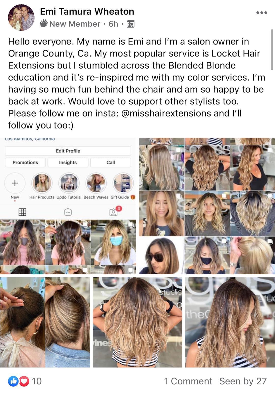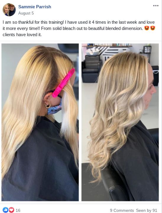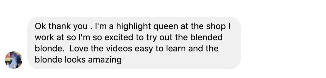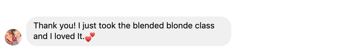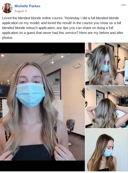 "Blended Blonde phenomenal course! The way it showed me how to do my low lights just blew my mind! If your looking for a class that just ups the level of blondes your doing you need Blended Blonde"